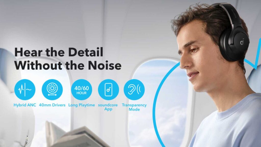 Soundcore Life Q20, Q30, and Q20i headphones provide top hybrid active noise cancellation, blocking up to 90-95% of ambient noise.